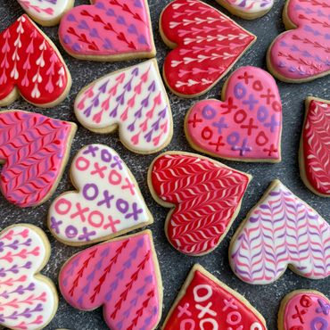 Deliciously soft sugar cookies with royal icing details. Intermediate designs are up to 2 shapes per dozen and up to 3 colors (not including white). These cookies typically have more details than the basic tier, but are not as intricate as the complex tier.